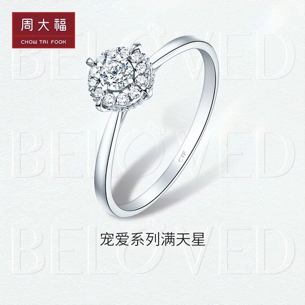 周大福成立于1934年,是国内较具规模的珠宝首饰品牌。周大福的钻戒以优美的设计和高品质的钻石而著名,钻戒造型多简洁大方。