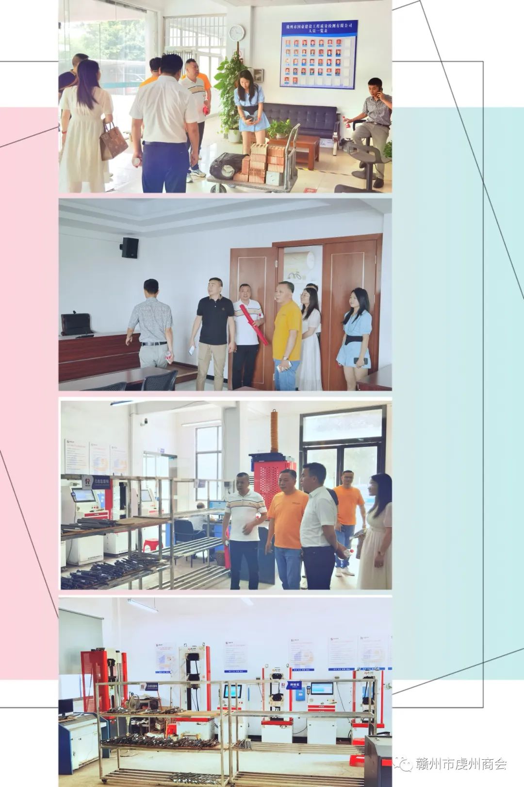 虔州商会各组组长 、副组长、副会长、党支部书记及部分会员来到、赣州市国豪建设工程质量检测有限公司走访参观交流,受到商会常务副会长、其公司总经理王新民的热情接待!家人们在喜悦欢笑的氛围中共叙乡情,共描绘美好的蓝图!
