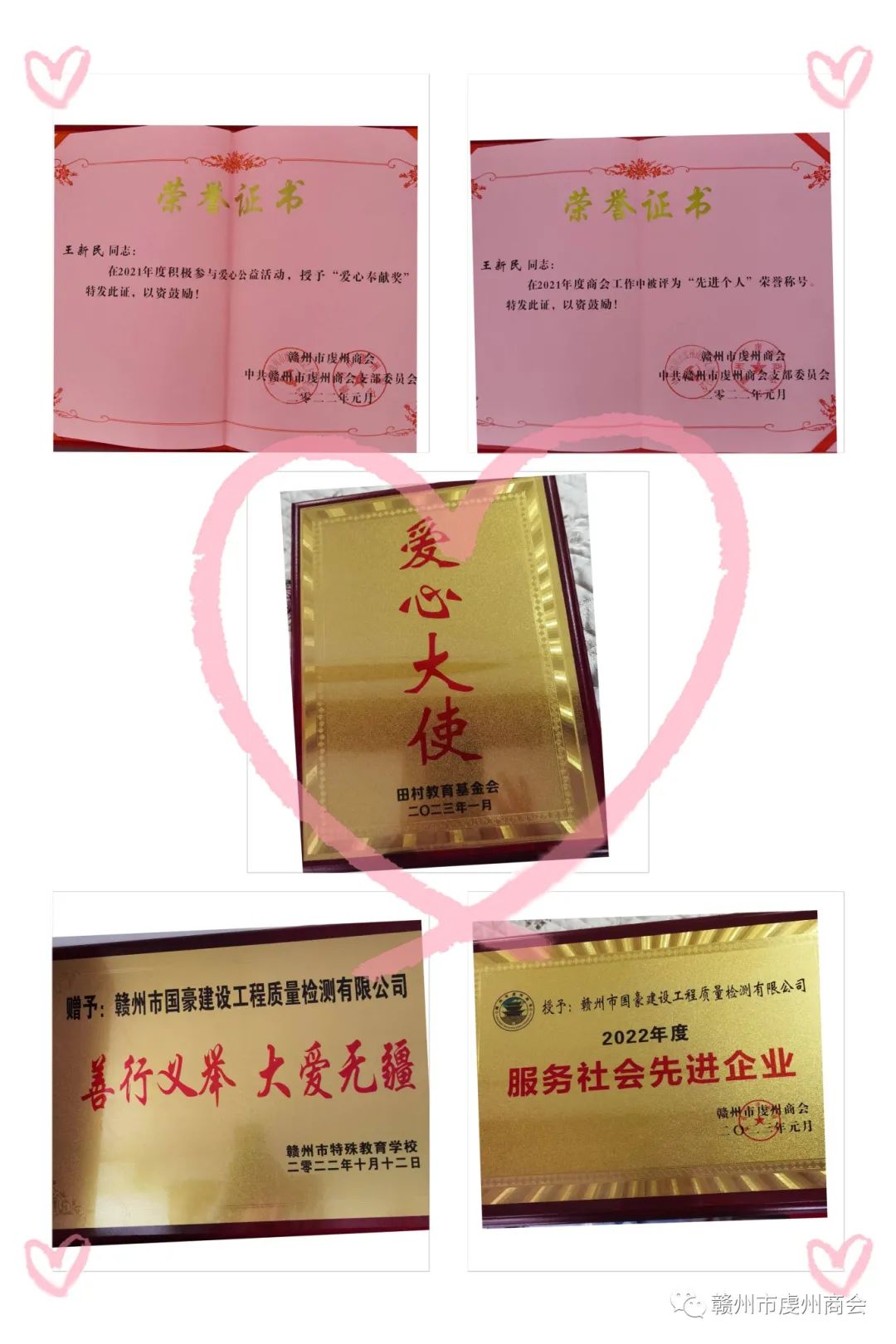 近年来常务副会长王新民做了许多公益事业、如:疫情期间向赣县各卡点捐资捐物、赣县韩坊抗洪救灾、积极参加赣州市特殊学校捐资捐物献爱心、为家乡赣县田村教育基金会捐资助学等各项公益光彩事业。王新民常务副会长的善行义举和大爱、真不愧是商会榜样的力量!
