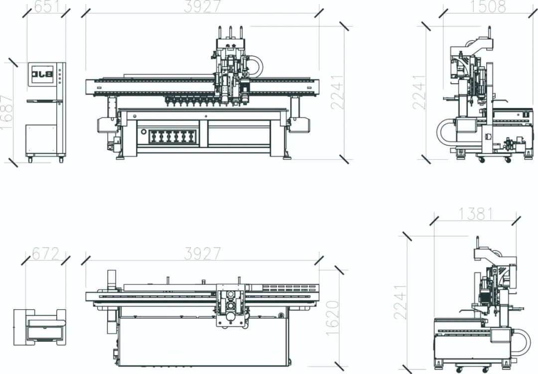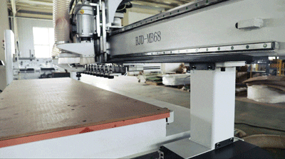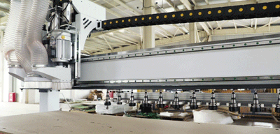 ● 阻挡气缸定位,台面采用五真空吸附分区结构,适应各种板材,吸附牢固, 不跑板。