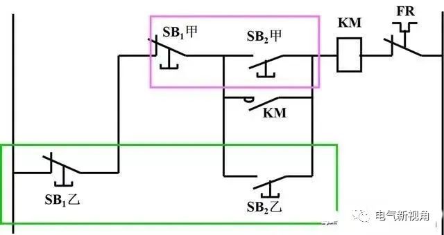 甲、乙的起动按钮并联;停止按钮串联。