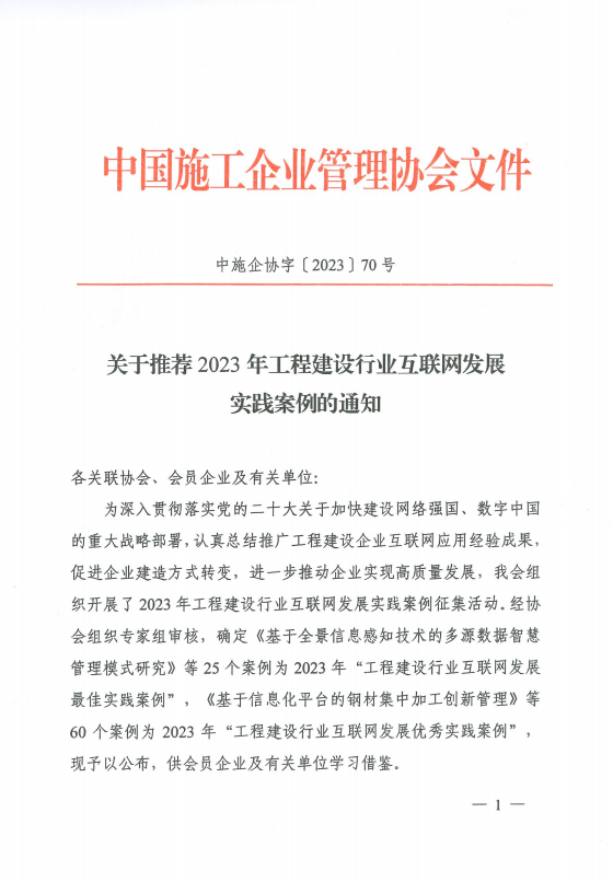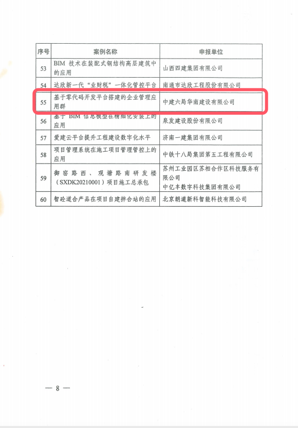 近日,中国施工企业管理协会发布《关于推荐2023年工程建设行业互联网发展实践案例的通知》,中建六局华南公司《基于零代码开发平台搭建的企业管理应用群》案例荣获“工程建设行业互联网发展优秀实践案例”。