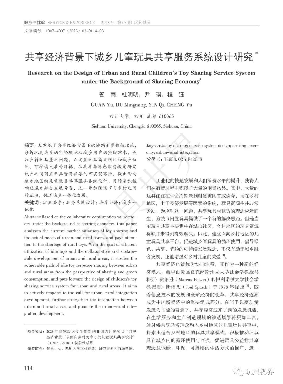 本文参考文献著录格式:管雨,杜明明,尹琪,程钰.共享经济背景下城乡儿童玩具共享服务系统设计研究[J].玩具世界,2023(3): 114-116.