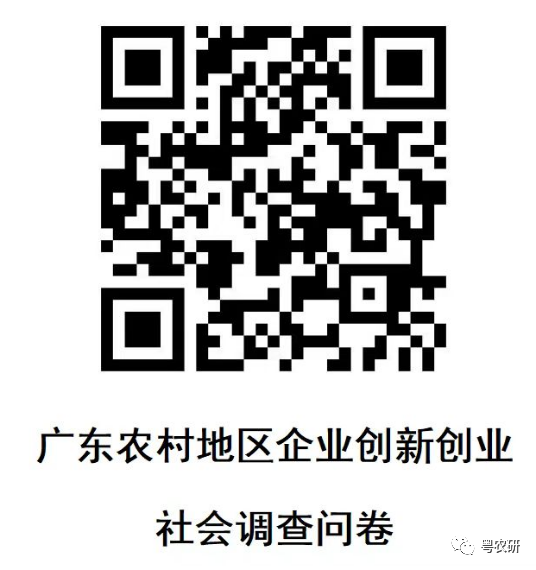 本项目采取线上和线下的方式,广东省内农村创业企业或个人均可扫描下方二维码填写调研问卷,感谢您的配合。