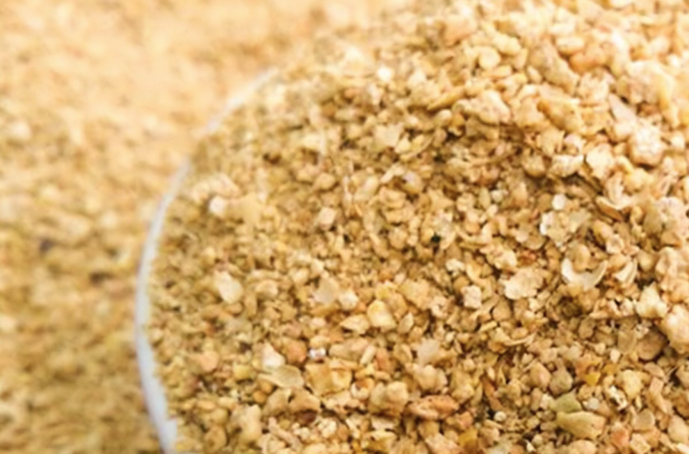 豆粕一般呈不规则碎片状,颜色为浅黄色至浅褐色,味道具有烤大豆香味。豆粕的主要成分为:蛋白质41%~48%,赖氨酸2.5%~3.0%,色氨酸0.45%~0.6%,蛋氨酸0.5%~0.7%。