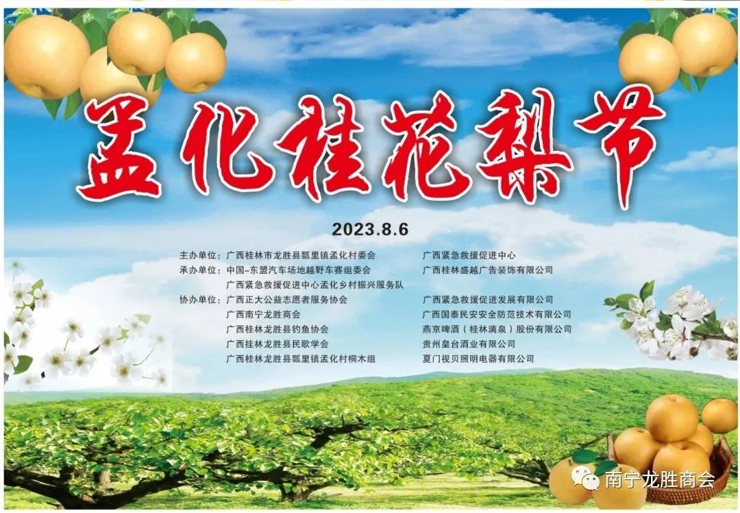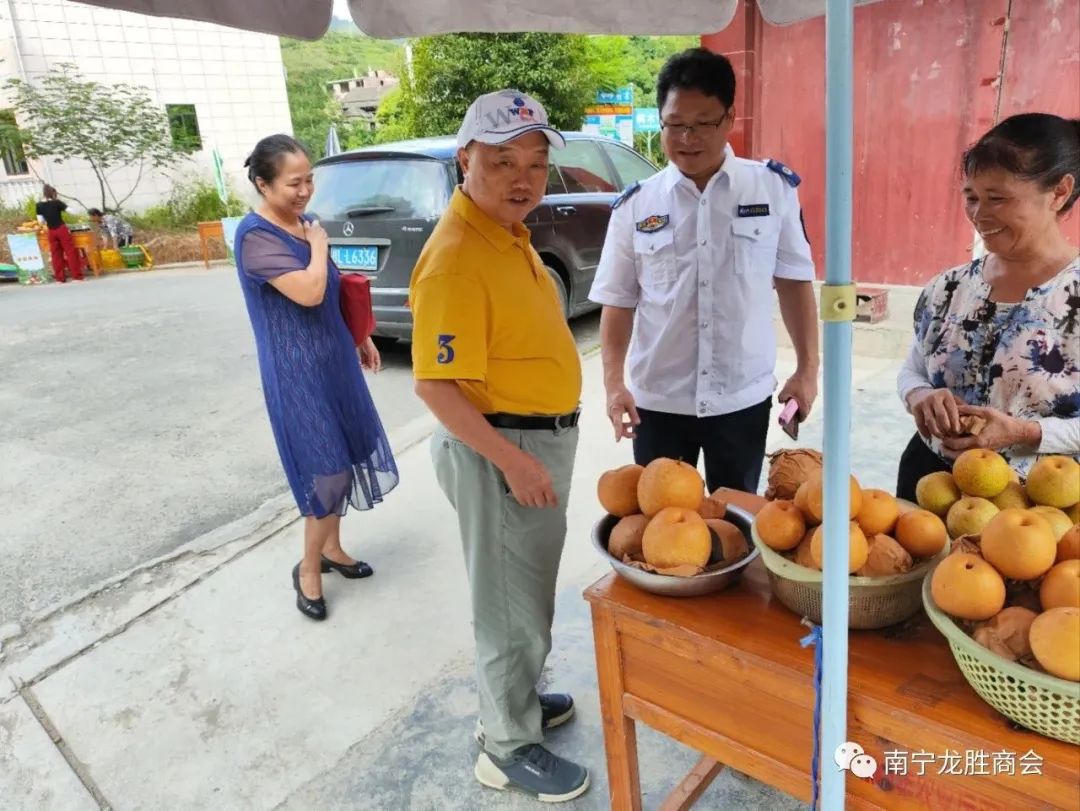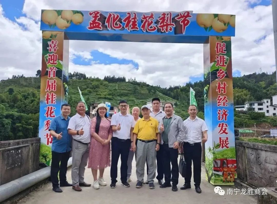 8月5至6日,南宁龙胜商会名誉会长粟永华,会长袁仕忠、谭周健,监事长潘桂山,八月轮值会长、常务副会长罗长发,常务副会长赵旺雄、余学胜,副会长赵希娥及乡贤汤启祥、莫小琴等一行代表到家乡瓢里镇孟化村参加了我会作为协办单位的"助力孟化乡村振兴采梨节"活动。6日,阳光明媚,瓢里镇孟化村采梨节活动现场热闹非凡,商农云集,当地政府领导和广西紧急救援促进中心主任讲话,粟老讲话并宣布采梨节隆重开幕,八方来宾品尝了汁多清甜的孟化桂花梨。我会全部到场领导乡贤当场购买了爱心梨2000余斤,并就商会今后助力乡村振兴与孟化村达成推广桂花梨意向。