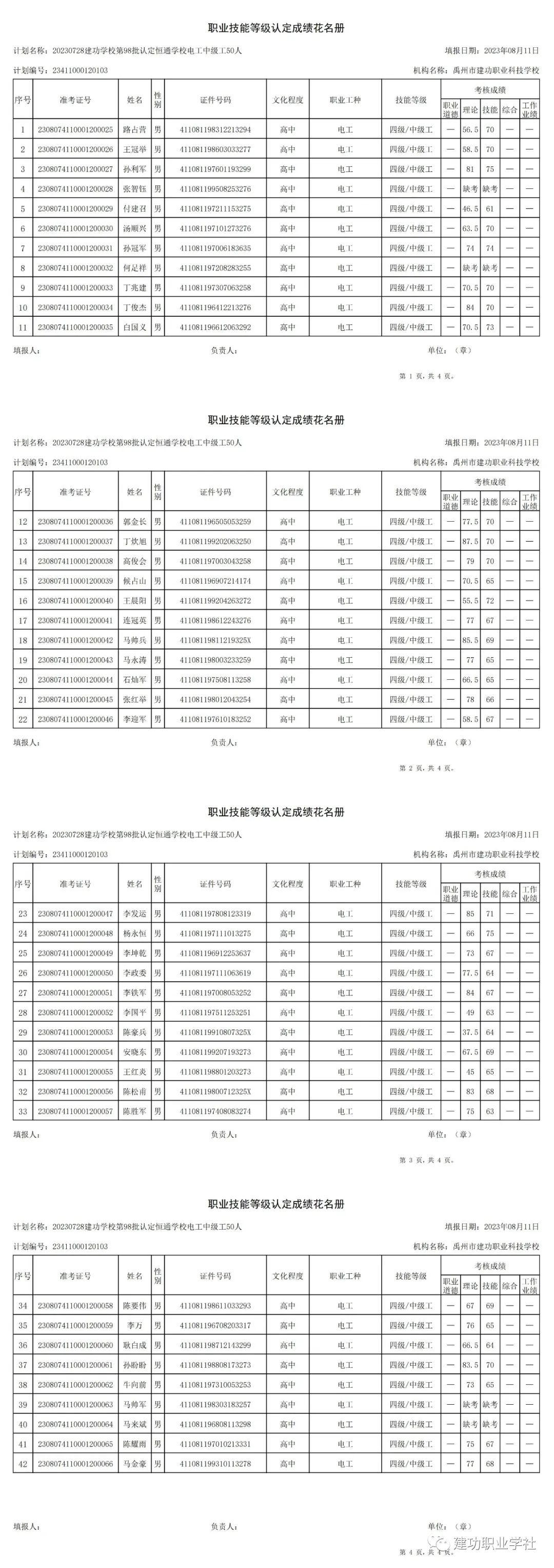 附件:1、2023年第98批电工(四级/中级)认定评价合格人员名单