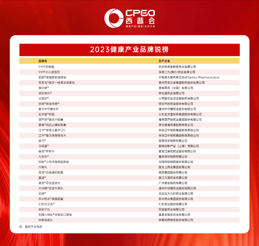 中康科技参考中企评医药健康专委会发布的“2023中国健康产业品牌发展指数”、行业监管数据库、公开投票数据和中康科技行业数据库和调研结果,通过科学量化评价,评选产生的综合性榜单。