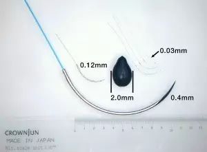 ↓↓显微外科用手术针与芝麻对比(图片提供:河野制作所)↓↓