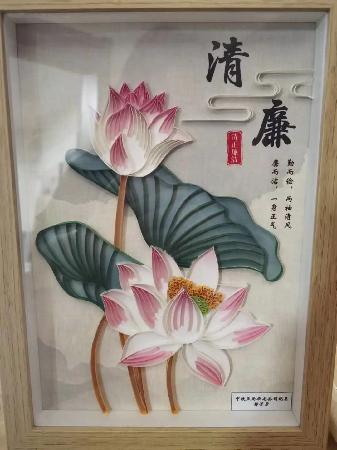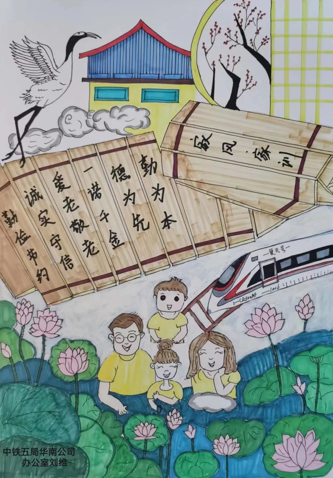 笔墨扬清风,书画绘廉洁,为深入学习贯彻党的二十大精神,推动习近平新时代中国特色社会主义思想主题教育走深走实,扎实推进第三个廉洁从业主题宣教月活动,引导公司职工培养廉洁高尚的道德情操,进一步夯实清正廉洁的思想根基,局纪委开展了“修身齐家、笃行立德”德廉书画征集展览活动。公司纪委认真组织策划,广大职工群众的积极响应,精选9件作品报送上级组织,其中,德廉手工作品《清廉》被中国中铁股份公司、中铁五局及局长沙片区子公司选入展览,德廉漫画作品《家风家训》、德廉书法作品《慎始敬终行稳致远》被中铁五局、局长沙片区子公司选入展览。