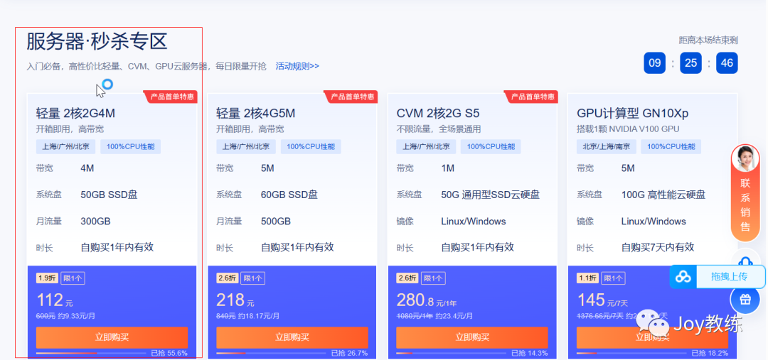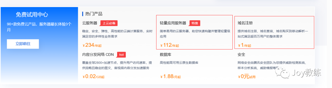 选择在哪一平台购买服务,要购买的内容包含:域名、服务器(个体创业可选择购买轻量级服务器),我尝试过的有阿里云和腾讯云,后来赶上活动还是选择了腾讯云。