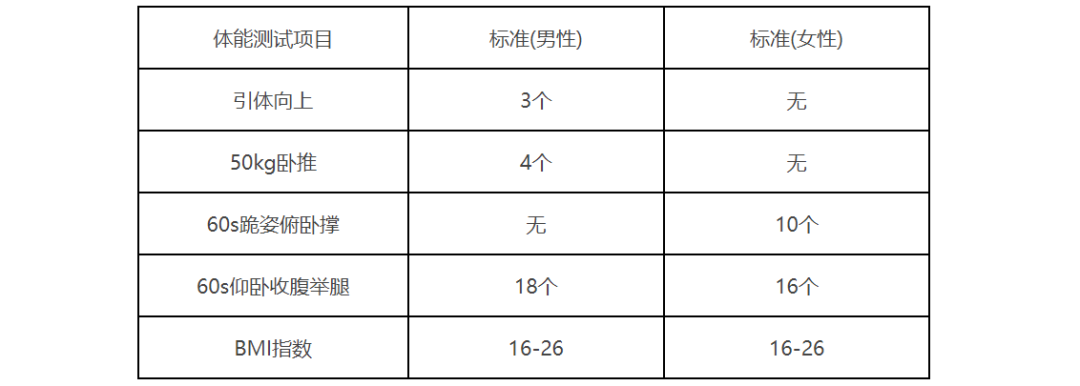 3、航空安全员体能考核项目及标准(以民航局最新考核标准为准):