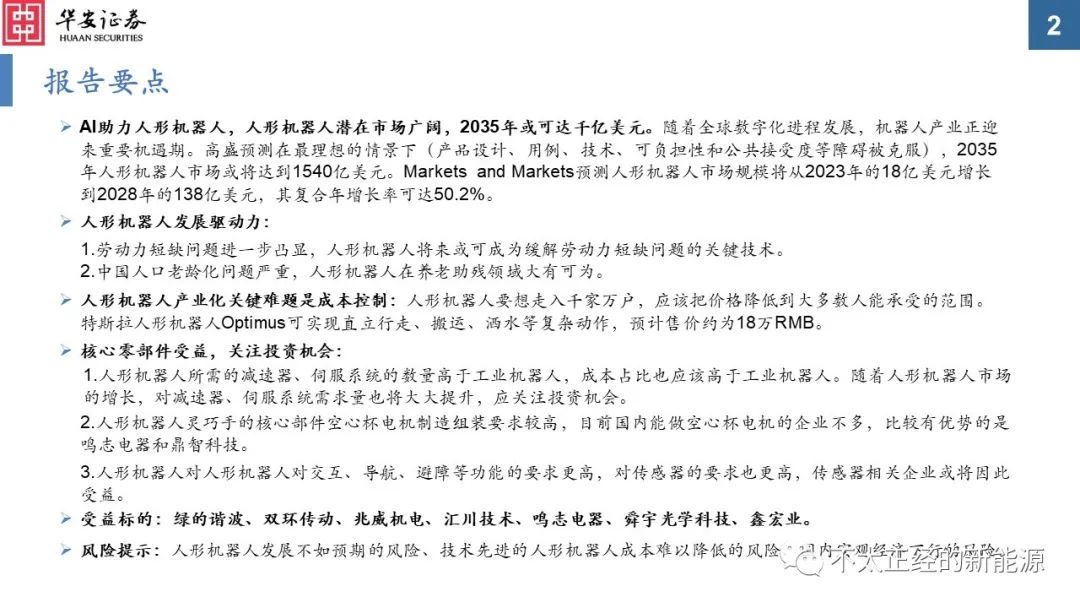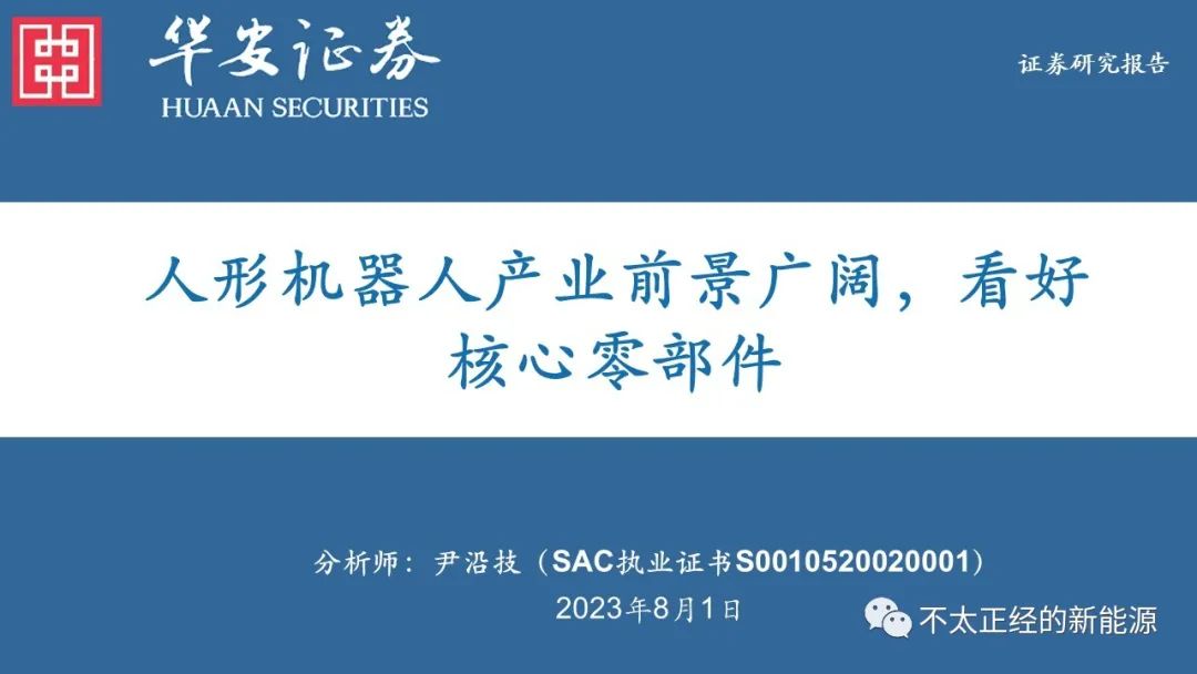 本文内容节选自华安证券研究所已发布报告:《人形机器人产业前景广阔,看好核心零部件》(发布时间:20230802),具体分析内容请详见报告。若因对报告的摘编等产生歧义,应以报告发布当日的完整内容为准。