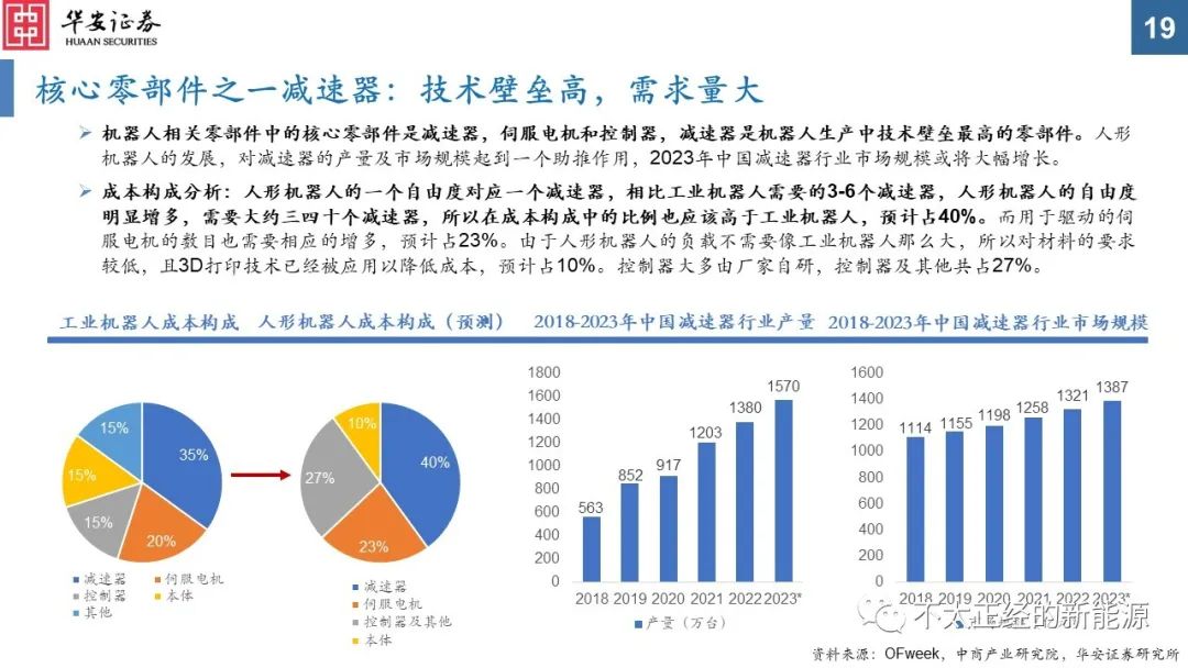 人形机器人所需的减速器、伺服系统的数量高于工业机器人,成本占比也应该高于工业机器人。
