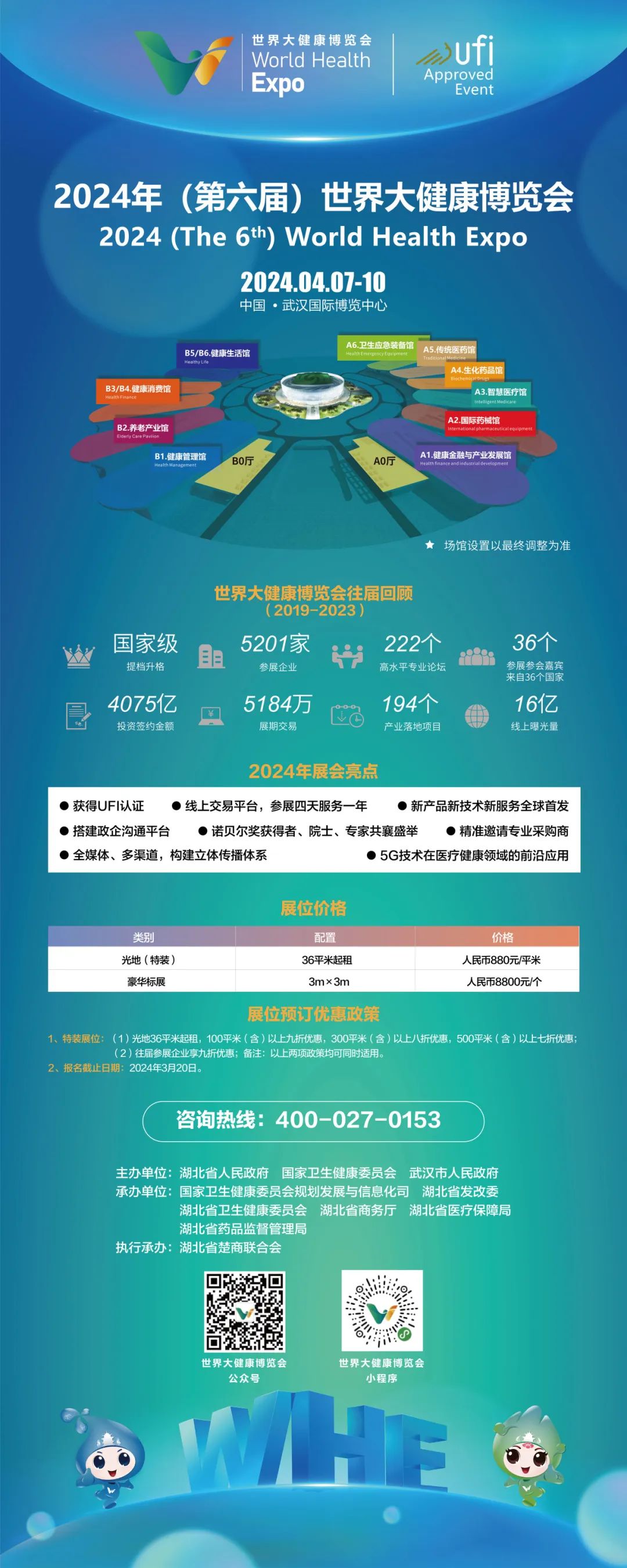 世界大健康博览会是我国大健康领域目前唯一一个国家级展会,自2019年至今已举办五届,展会旨在搭建全球大健康交互展示平台,聚集全球大健康产业资源,促进大健康事业健康可持续发展,满足人民群众日益增长的健康需求。2024年世界大健康博览会拟于2024年4月7日在武汉开幕,展会面积12万平方米。届时,来自全球大健康领域的企业家将聚集武汉,共襄健康盛会,共话行业发展。