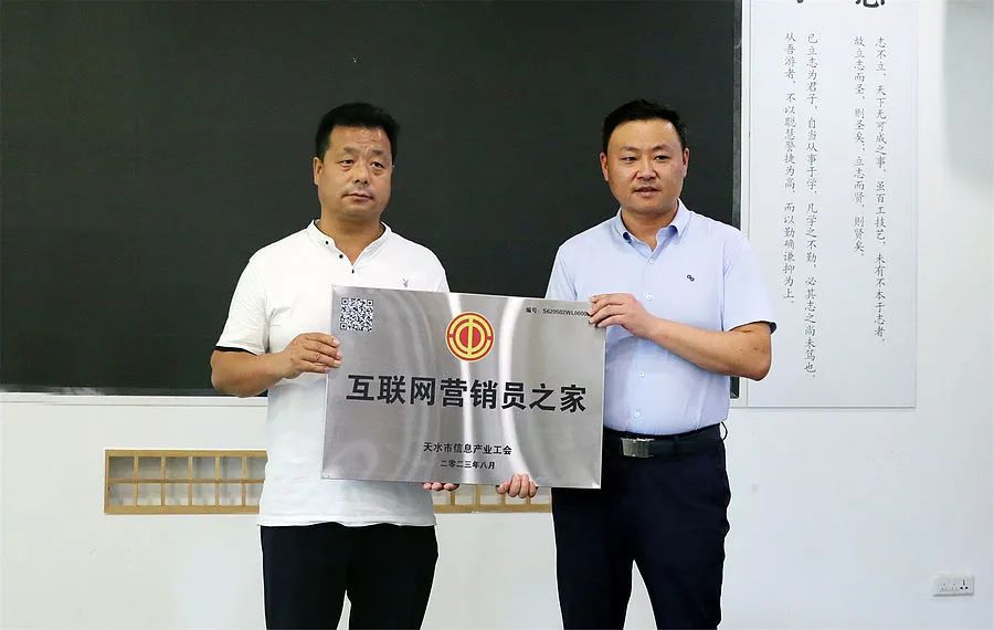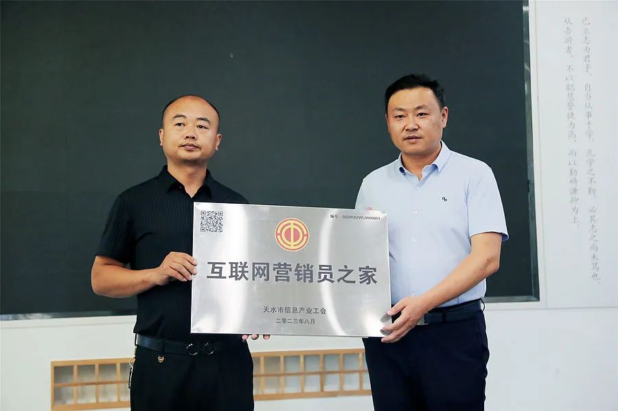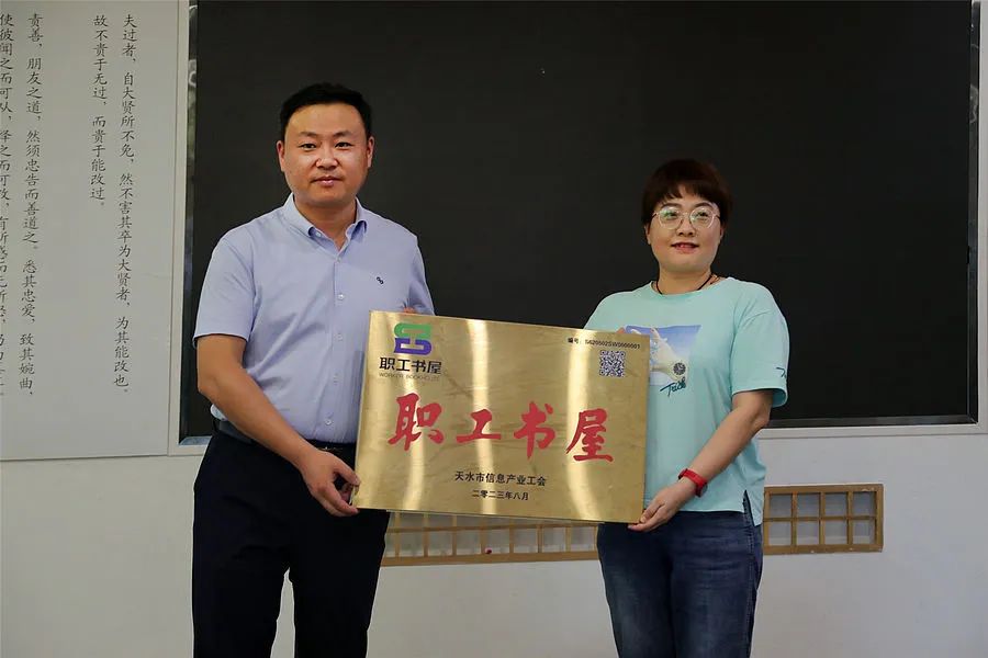 天水市总工会组宣部负责同志为甘肃天之水文化产业有限公司、甘肃乐享云电子商务有限公司授予“互联网营销员之家”,同时为帆书天水运营中心授予“职工书屋”。