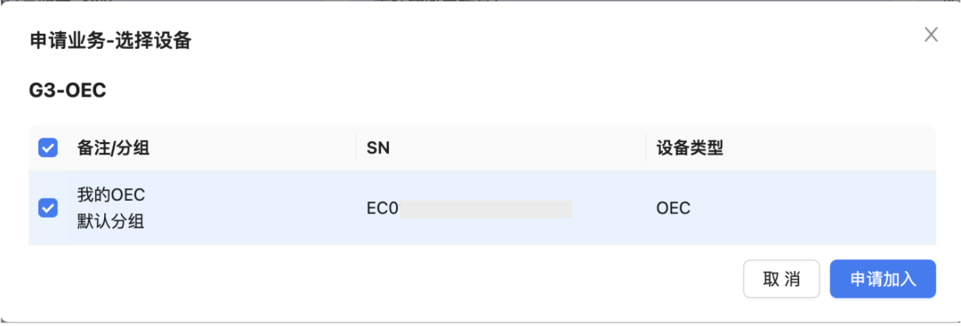 勾选您想报名的设备,点击【申请加入】即可