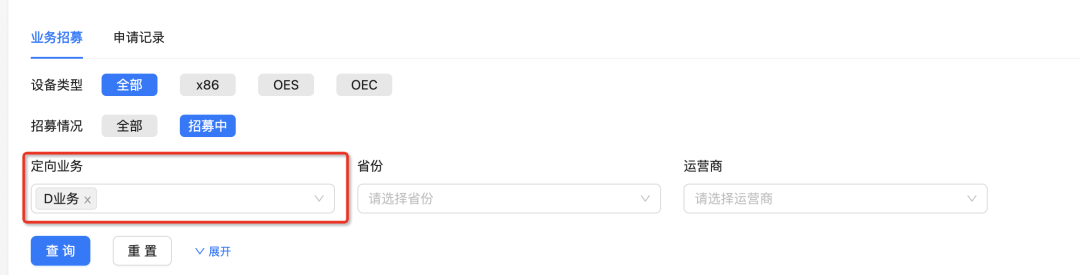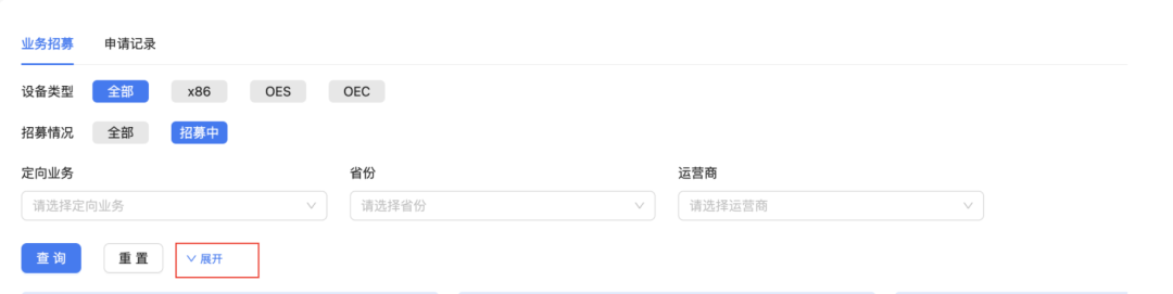 点击【展开】可以输入更多选择,有助于精确找到符合您网络与资源条件的定向业务
