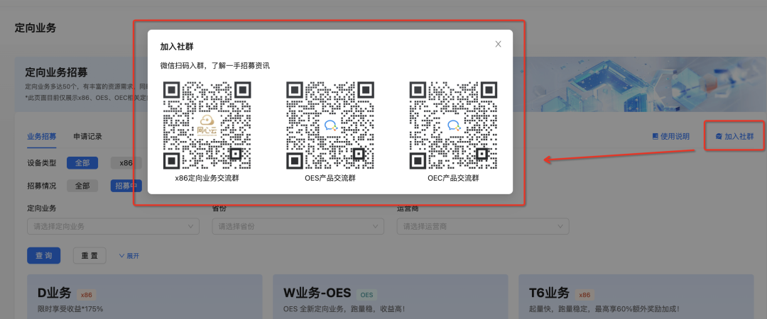 步骤2:选择您想上线的定向业务,点击【立即加入】。