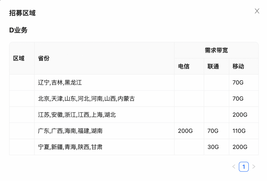 找到您的省份-运营商下是否有带宽数字即可,为空则暂时没有招募需求哦~