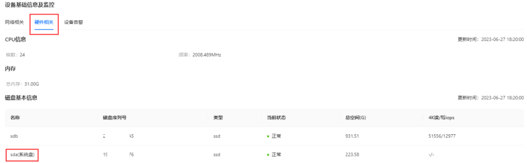 支持查看各磁盘iops、磁盘名称、内存大小、cpu大小等信息展示