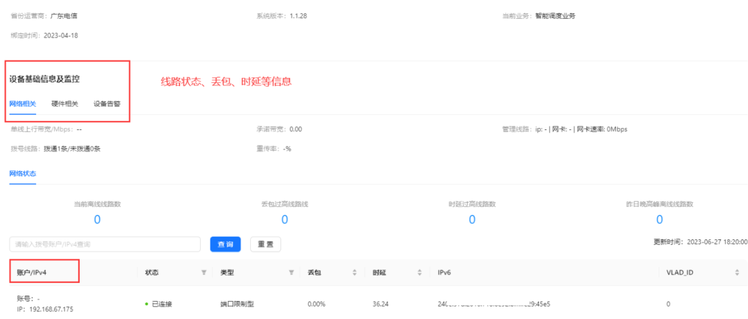 支持查看各线路的IPv6地址、丢包率、时延、Nat类型等展示
