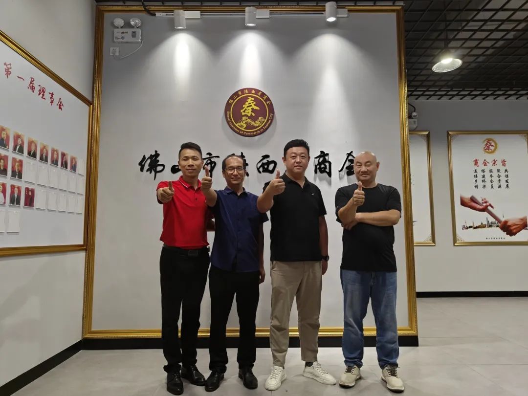 我佛山市山东商会{以下简称“我会”}秘书处组织会员代表走进友好兄弟商协会:佛山市陕西省商会进行友好交流。随同参加走访的我会会员家人有:会员张立恒,会员高占强,会员张丙运以及专职副秘书长兼办公室主任刘铭昂。