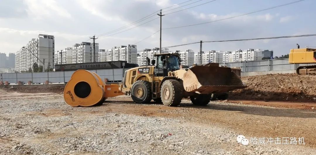 2台25kj冲击碾压机械已进场,工作一开始,工作人员就使用冲击碾压机械在已存在的回填区进行冲击碾压处理,这种已广泛使用的非工程回填压实技术可以改善路基。