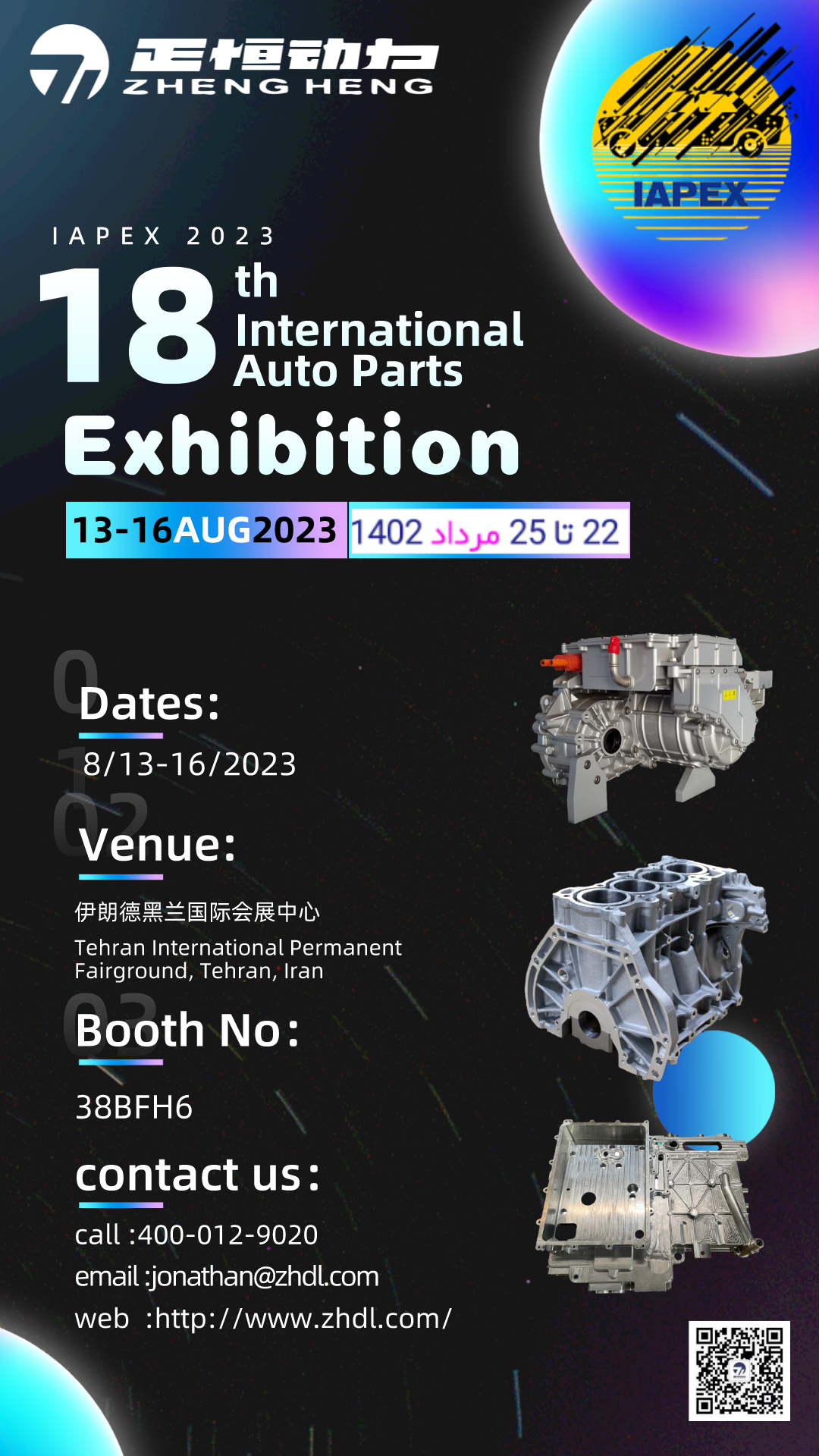 非常感谢您对成都正恒动力公司长期以来的大力支持,值此2023年伊朗德黑兰国际汽配展来临之际,我们在此真诚邀请您,热切期盼您的参观,恭候您的到来。