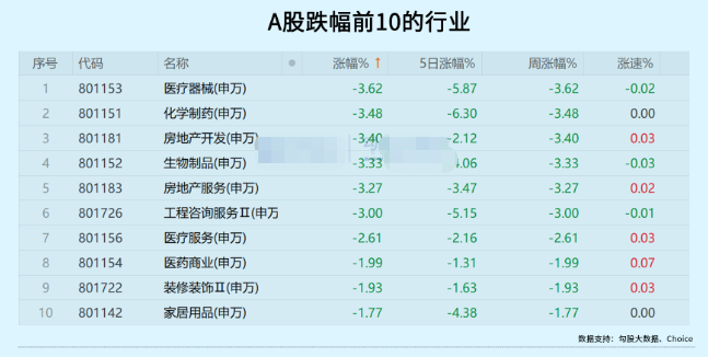 申万二级行业跌幅前10中,医药及医疗相关占据5席。其中,恒瑞医药股价7连跌,7个交易日市值蒸发632.9亿。