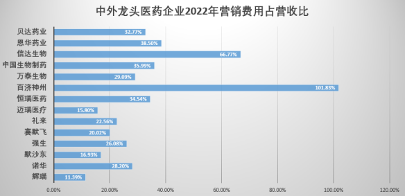 Wind数据显示,申万医药A股生物医药类企业中,2022年销售费用超10亿元的有90家,其中有39家销售费用在营收中占比超过50%。