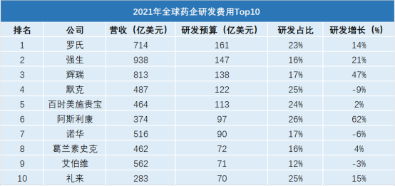 统计数据显示,2021年全球前三的药企研发费用投入分别为161亿美元,147亿美元和138亿美元,而国内药企巨头百济神州,江苏恒瑞和上海复星分别为95亿元,59亿元和38亿元。