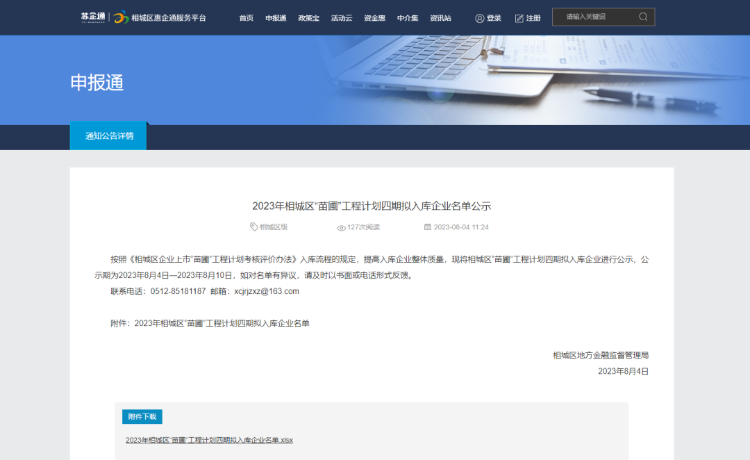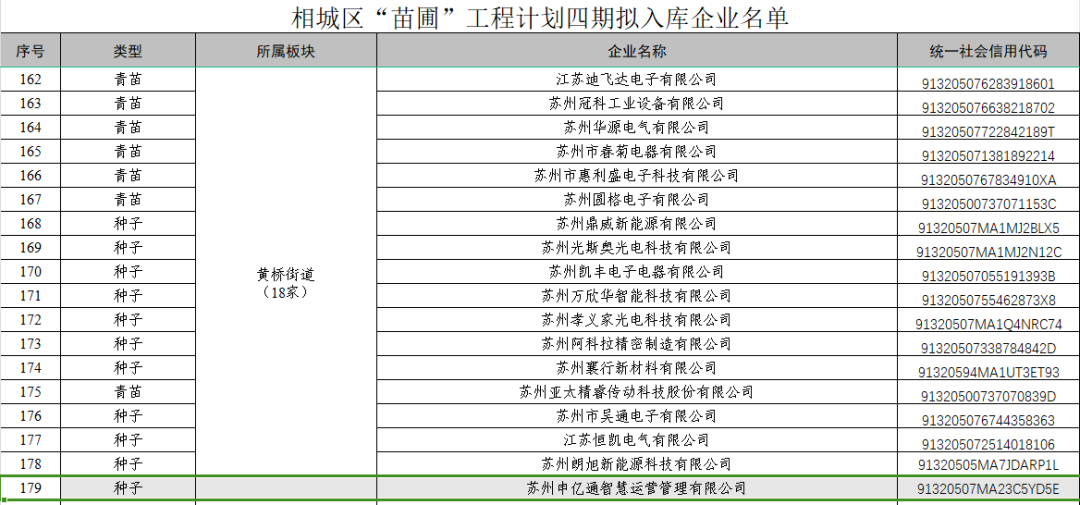 为进一步优化营商环境,助力“苗圃”企业进军资本市场。近日,苏州市相城区地方金融监督管理局按照《相城区企业上市“苗圃”工程计划考核评价办法》入库流程规定,公示了2023年相城区“苗圃”工程计划四期拟入库企业,苏州申亿通智慧运营管理有限公司成功上榜!