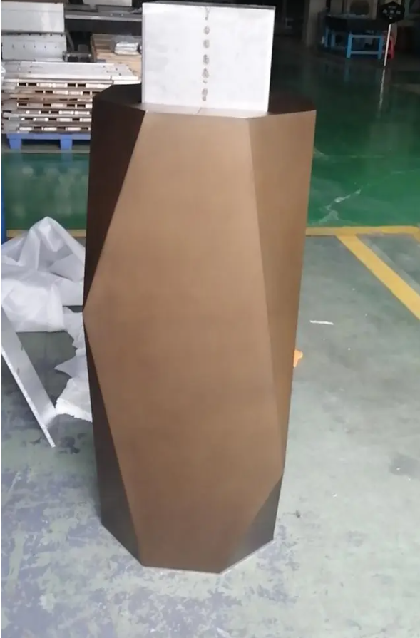 不锈钢包柱是在不锈钢板上进行技术和艺术加工,同时也有多种色彩可选择,比如香槟金色、银色、黑钛色等。开始加工的流程是先减板下料,刨槽折弯,加工成需要的圆形或者方向的形状,如果是形状比较特殊的,则还需要滚圆,滚刀等工艺。
