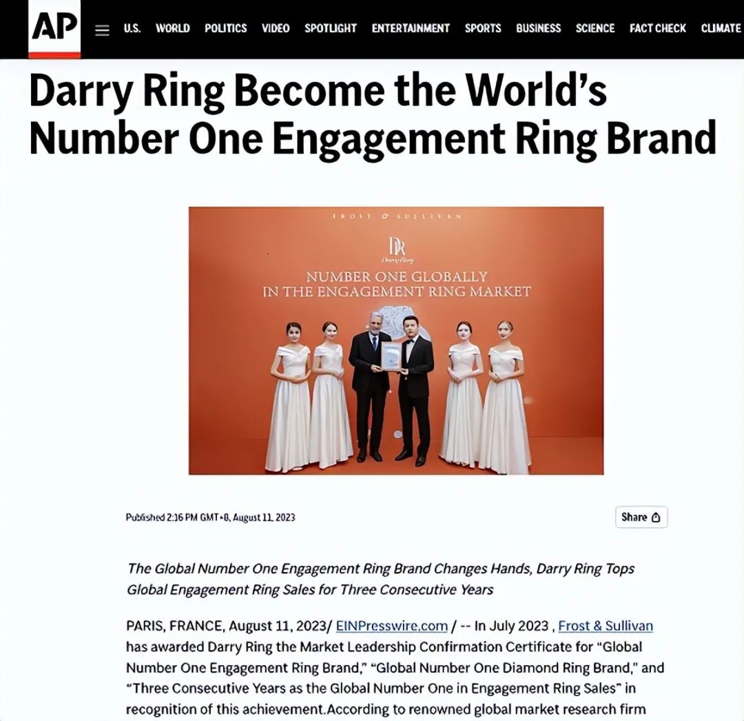 近日,全球知名市场调研机构弗若斯特沙利文公布全球钻戒市场调研结果:DR钻戒成为全球第一求婚钻戒品牌。此消息在海外主流媒体引发热议。