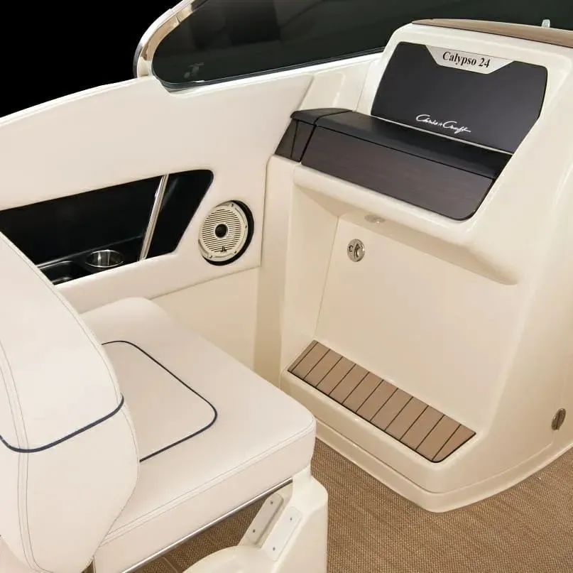 海中女神24是一款将优雅的造型与完备的功能相结合的船型。双控制台设计,驾驶台在右侧,标志性的双喇叭,深V型船头,轮廓优美且坚固可靠的挡风玻璃,尽可能配备所有您喜爱及需要的设施,能满足休闲娱乐的需求,为您带来极佳的乘坐体验。搭载一台水星300马力的发动机,可以让您在水上度过美好的一天!
