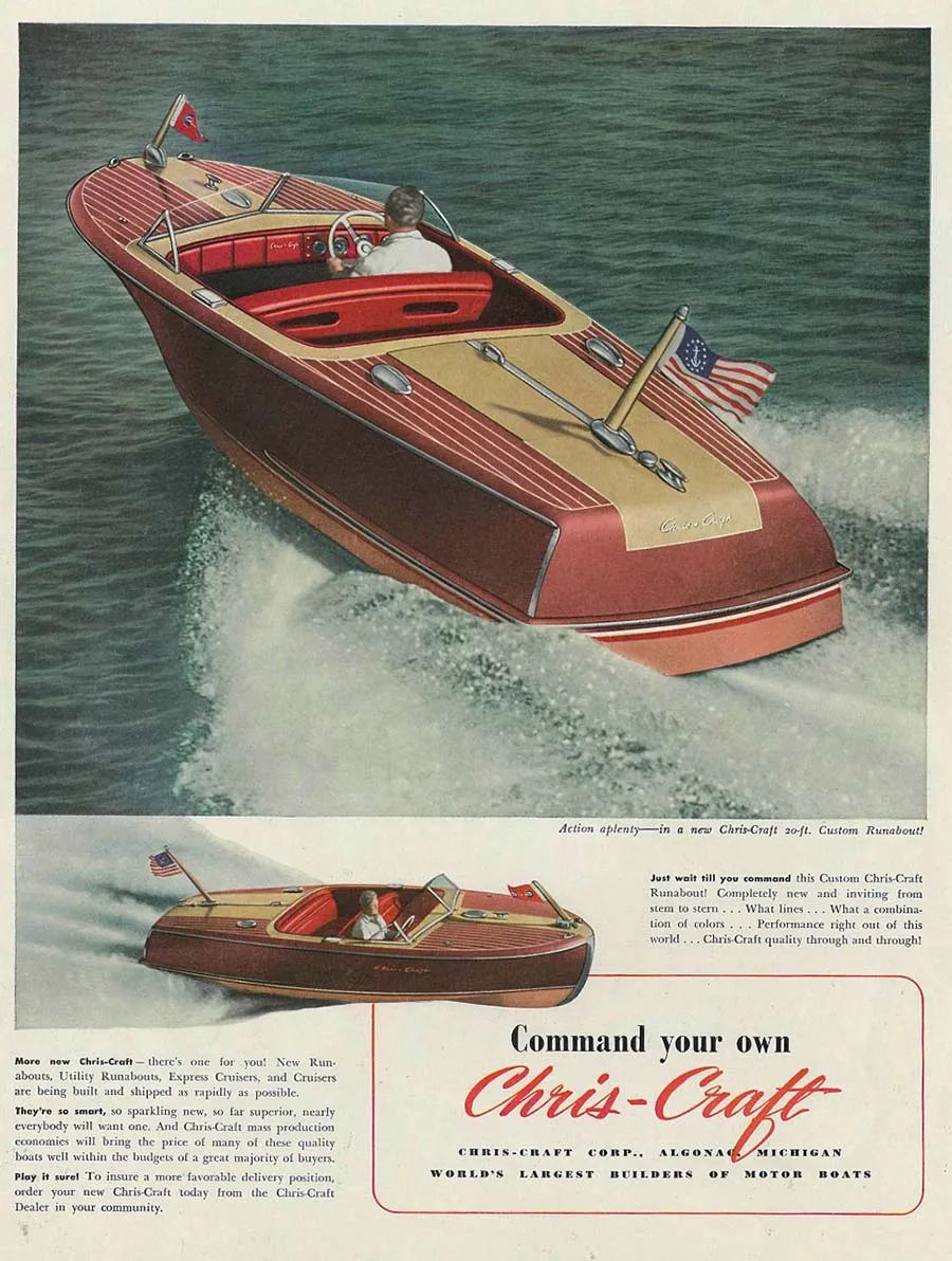 创建于1874年,近150年悠久历史,顶级品质和精湛工艺的代表,美国游艇文化的重要象征,高端游艇品牌克里斯(Chris Craft)在政界军界富豪明星圈里都很出名。在过去的一个半世纪里,克里斯游艇的倩影出现在众多好莱坞影片之中,太多名流明星权贵是克里斯游艇的船东,比如被誉为世界摇滚之父的猫王,他在1963年买了一艘克里斯游艇,并以其广受欢迎的歌曲“Hound Dog”命名,几年前该艇再次成功转售,可见克里斯游艇的精品质和高保值。