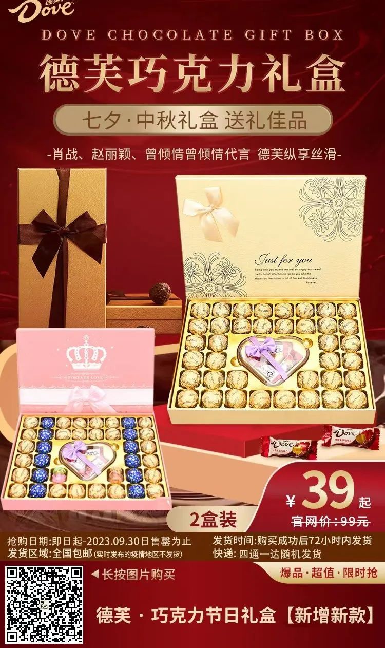 【各大明星倾情品牌代言|礼盒月销30w+「德芙」全民热爱品牌】仅39元起购【德芙巧克力·高级定制礼盒】送朋友、送家人、送爱人、送自己最佳之选,好运礼盒&情人节优选,德芙-最优雅的表达,来自350w+顾客的热爱!6种礼盒随心选,还有小玩偶!