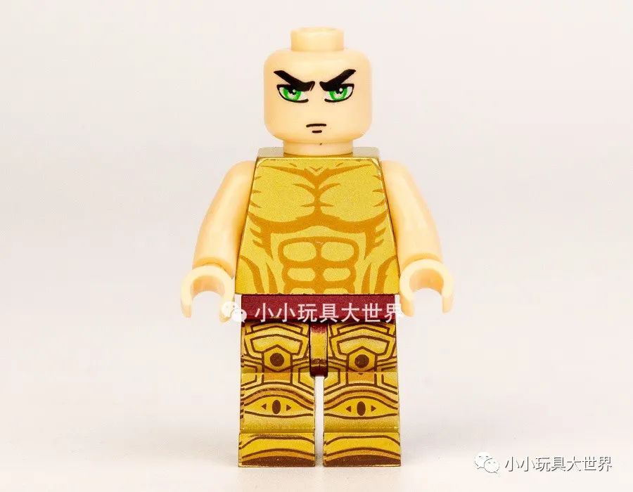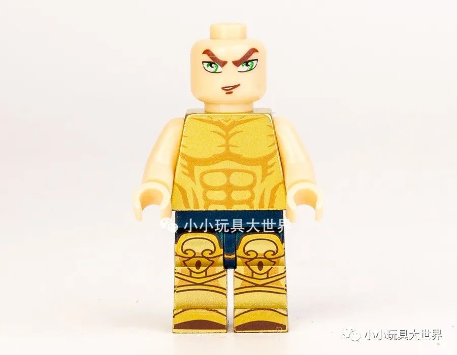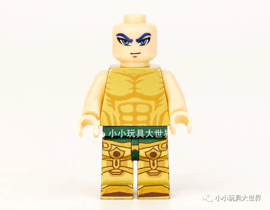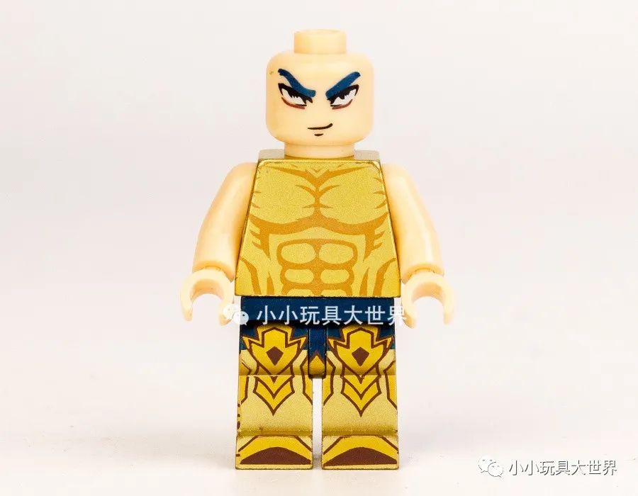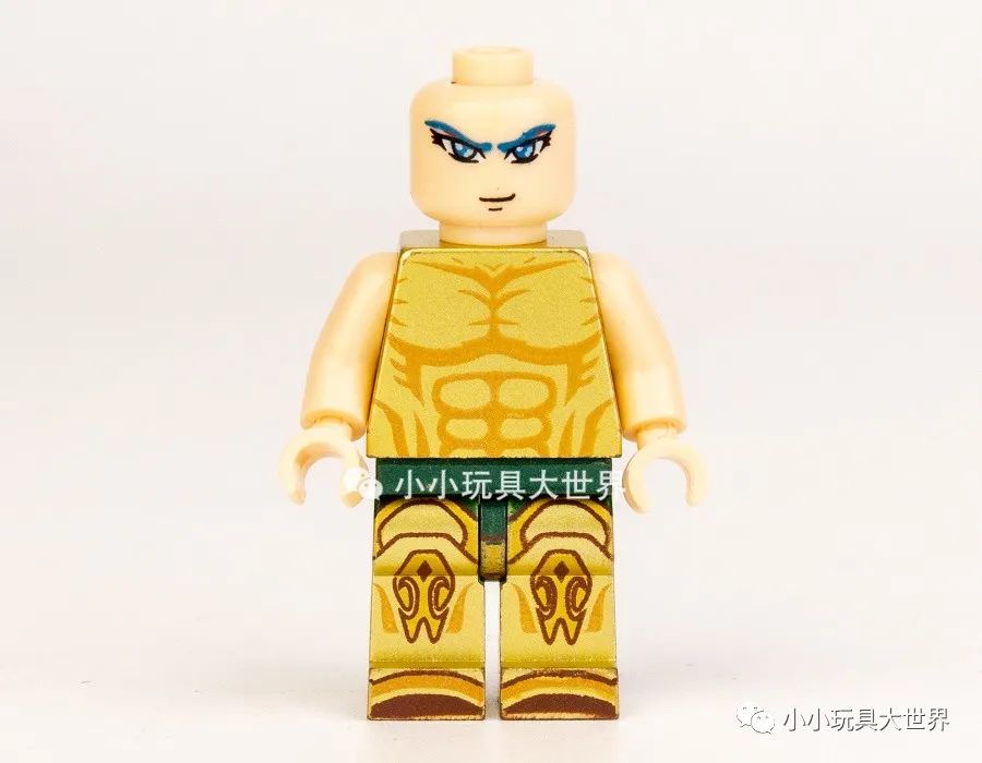 摘下盔甲后上半身是金色素体上印刷了肌肉纹理,六款上半身的纹理基本相同,各款区别在表情和腿部的印刷图案,还有一点,这次双臂居然没有印刷。