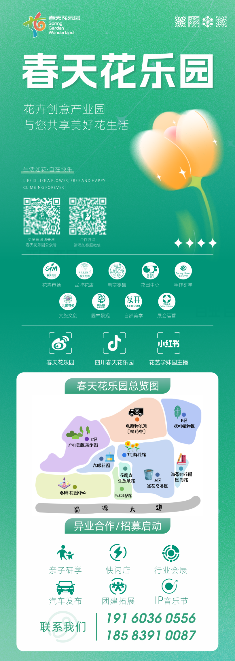 春天花乐园春肆花园中心是全球首创美好花生活新零售产商综合体,也是2024成都世园会郫都分会场核心主展区,通过花卉、园艺、宠物、花文化、花生活五大创意业态,线上线下融合,创新产业发展模式,与郫都分会场“一心一片一环十二园百点”场景有机联动,打造丰富的花植场景、花卉园艺活动、新品种展示、创意设计展、家庭园艺展等内容,积极展现2024成都世界园艺博览会川花品种、园林文化和创意设计的表达,并将产业实践成功经验复制推广。