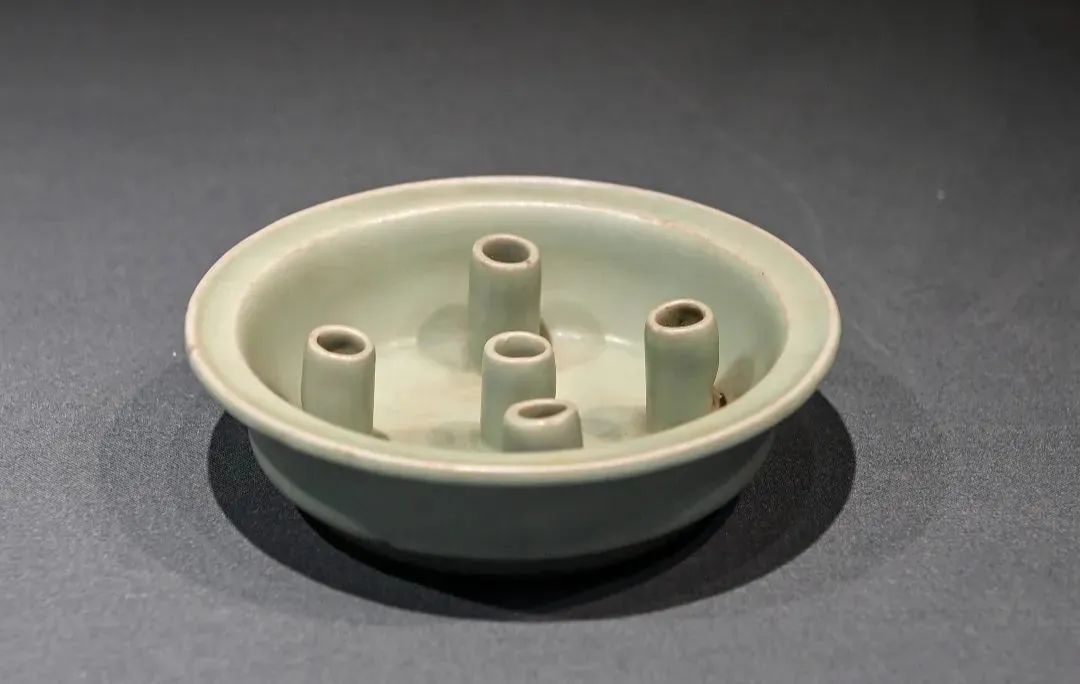 龙泉窑豆青釉五管瓷花插(张之冰 摄)
