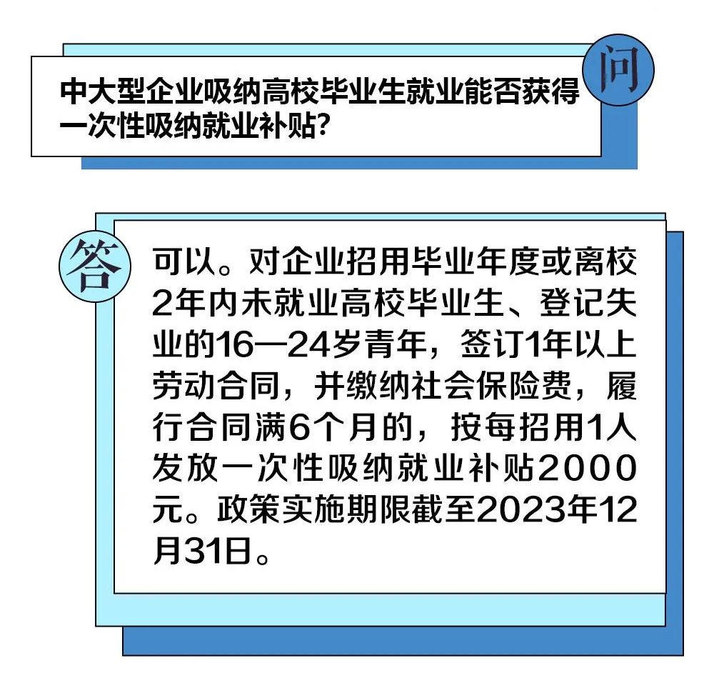 【博闻强识】中大型企业吸纳高校毕业生就业能否获得一次性吸纳就业补贴?
