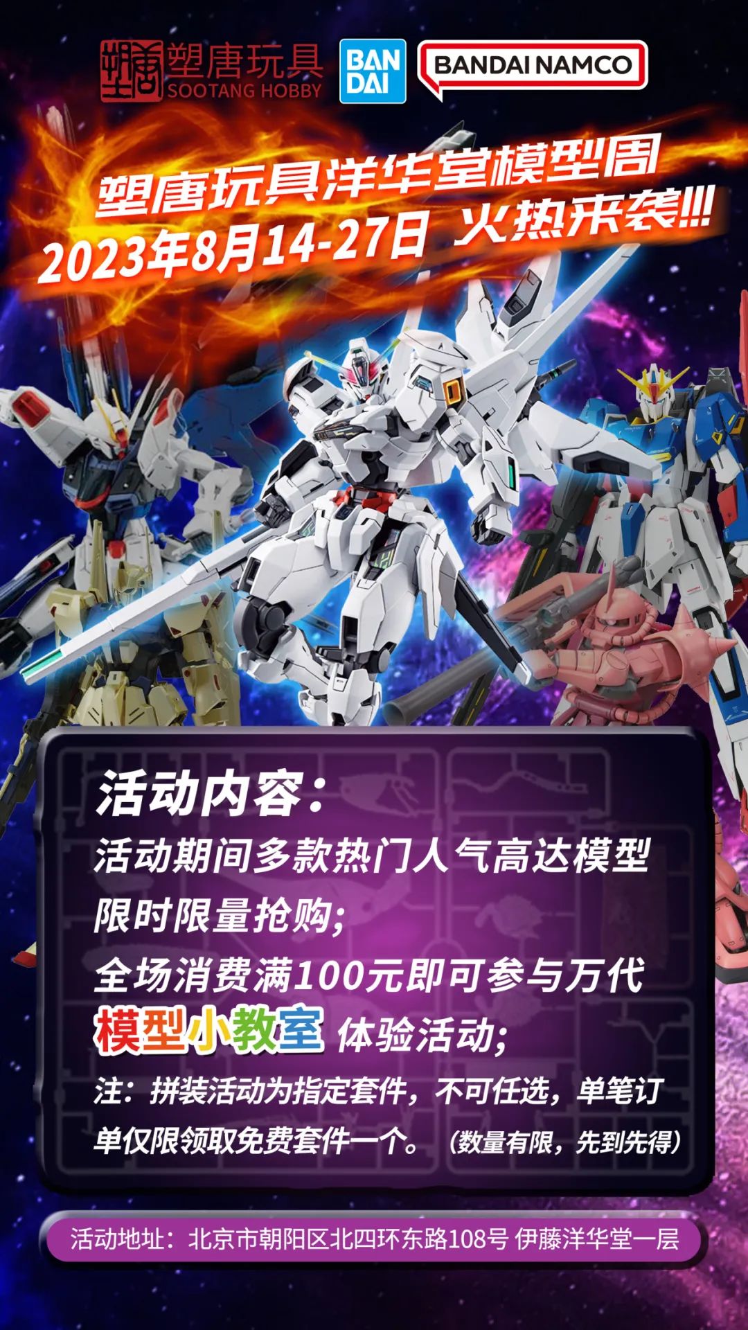 既然是模型周活动,那就必须把小伙伴们的高达模型安排到位!活动期间超多款热门人气高达模型限时限量出没,HG异灵必须抱一盒回家!MG夏亚专用扎古2.0大家也绝对不能错过~款式多多价格美丽,你想要的我们都有!