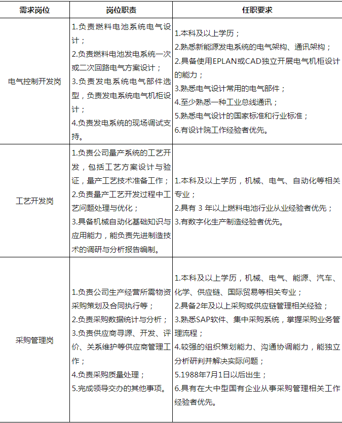 东方电气(成都)氢燃料电池科技有限公司因工作需要,面向社会及集团内部公开招聘以下专业人员。