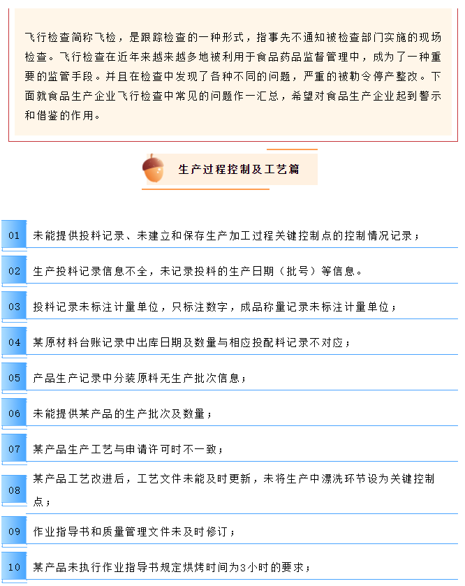 飞行检查问题汇总(过程、工艺、设备、卫生、检验、召回、仓储、采购)等