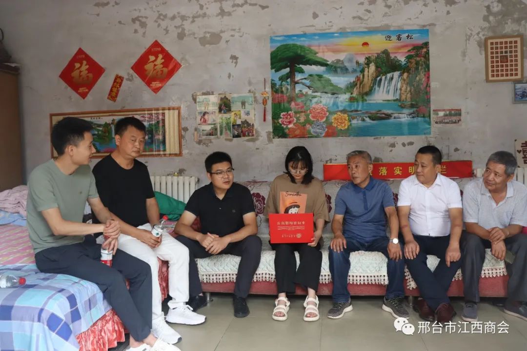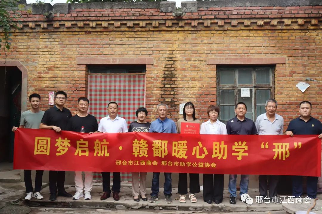 8月12日上午,为凝聚社会力量,帮助贫困大学生完成学业。邢台市江西商会、邢台市助学公益协会联合开展“圆梦启航·赣鄱暖心助学‘邢’”爱心资助活动。邢台市江西商会会长高国庆、执行会长田宗福、熊小珺、常务副会长陈靖、皮文、秘书长李友明、监事会主席黄鹤超、顾问黄圣荣;邢台市助学公益协会副会长王丽涛、副秘书长韩帅等一行10人,驱车专程到邢台沙河市兴固村,将10000元第一学年的学费,交到受资助贫困大学生张涵烁手中。