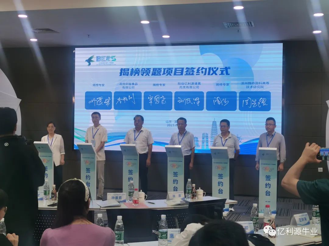下午,2023海外留学人才高峰荟同期召开,会上,公司负责人对公司发展优势、技术需求与海外留学人才进行宣讲发布,得到与会人才的积极响应。同时,通过第二届全国博士后创新创业大赛揭榜领题赛宣讲对接活动,山东省农科院宋恩亮研究员带领的团队成功揭榜公司高档肉牛新品系培育项目并签约。共同打造具有自主知识产权的高端黑牛新品系。