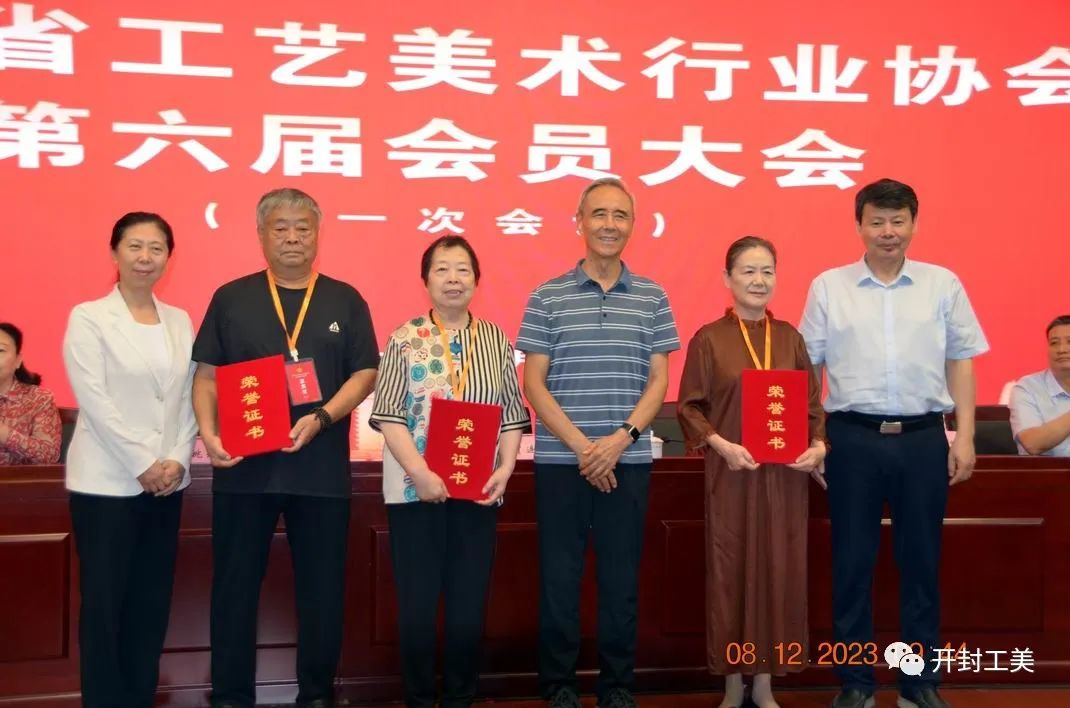 今天从河南省工艺美术行业协会第六届会员大会获悉,授予全省三位大师河南省工艺美术终身成就奖称号。开封工艺美术行业的韩玉琴、刘双凤、吴天放三位大师荣获殊荣。