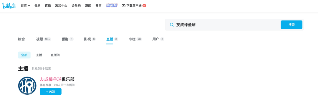 直播平台在Bilibili,在首页搜索“友成棒垒球”,在下面点击直播,就可以看到我们啦。