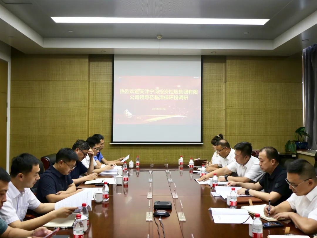 8月10日,天津宁河投资控股集团有限公司党总支书记、董事长张铁立等一行领导莅临津保环投开展调研交流。津保环投党总支书记、董事长罗江华,总经理赵永涛及相关班子成员、部门负责人参加会议。